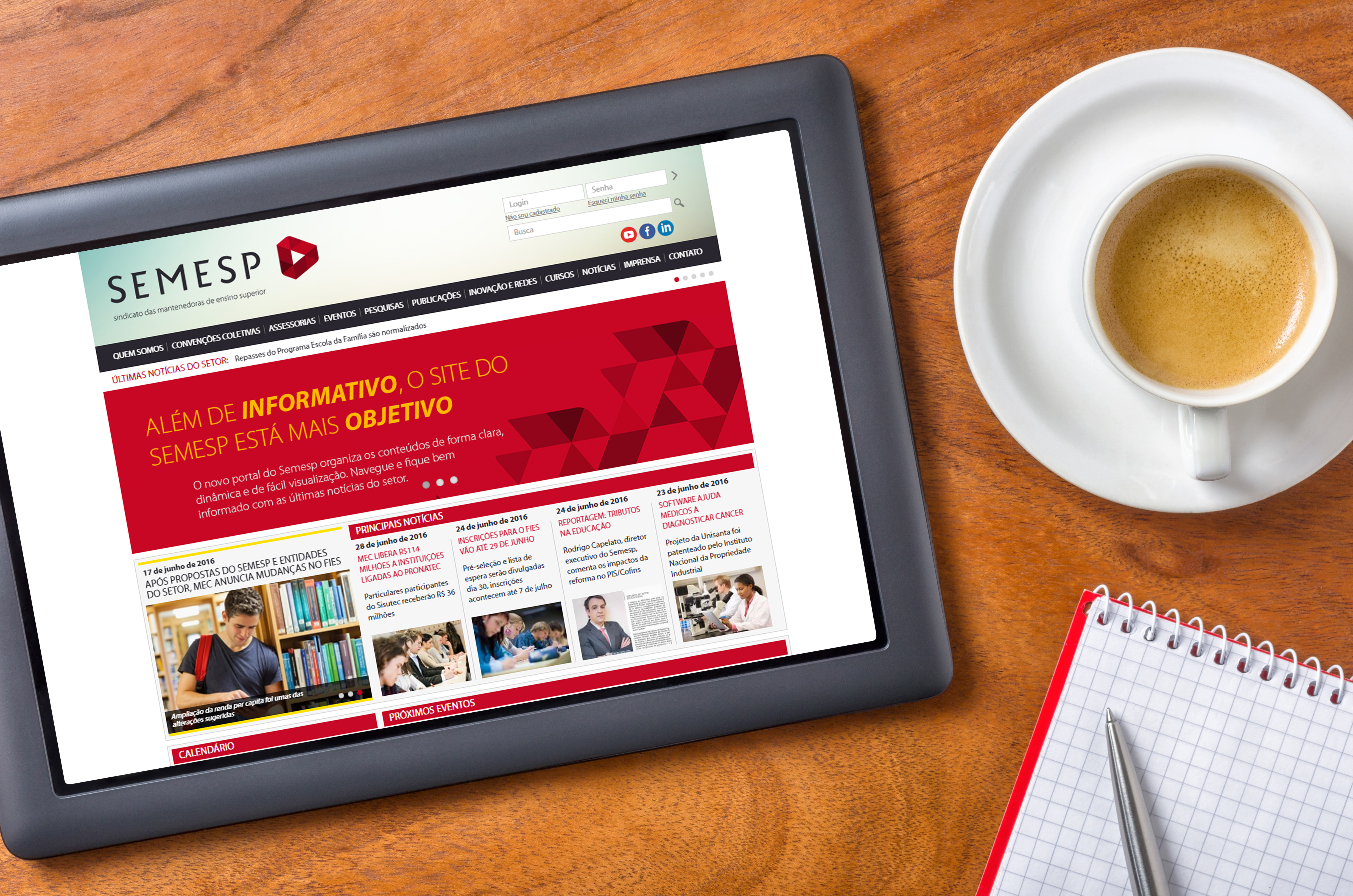 30 de junho de 2016O Semesp acaba de lançar um novo portal na web com novos elementos e um design mais moderno, organizado, intuitivo e, principalmente,...