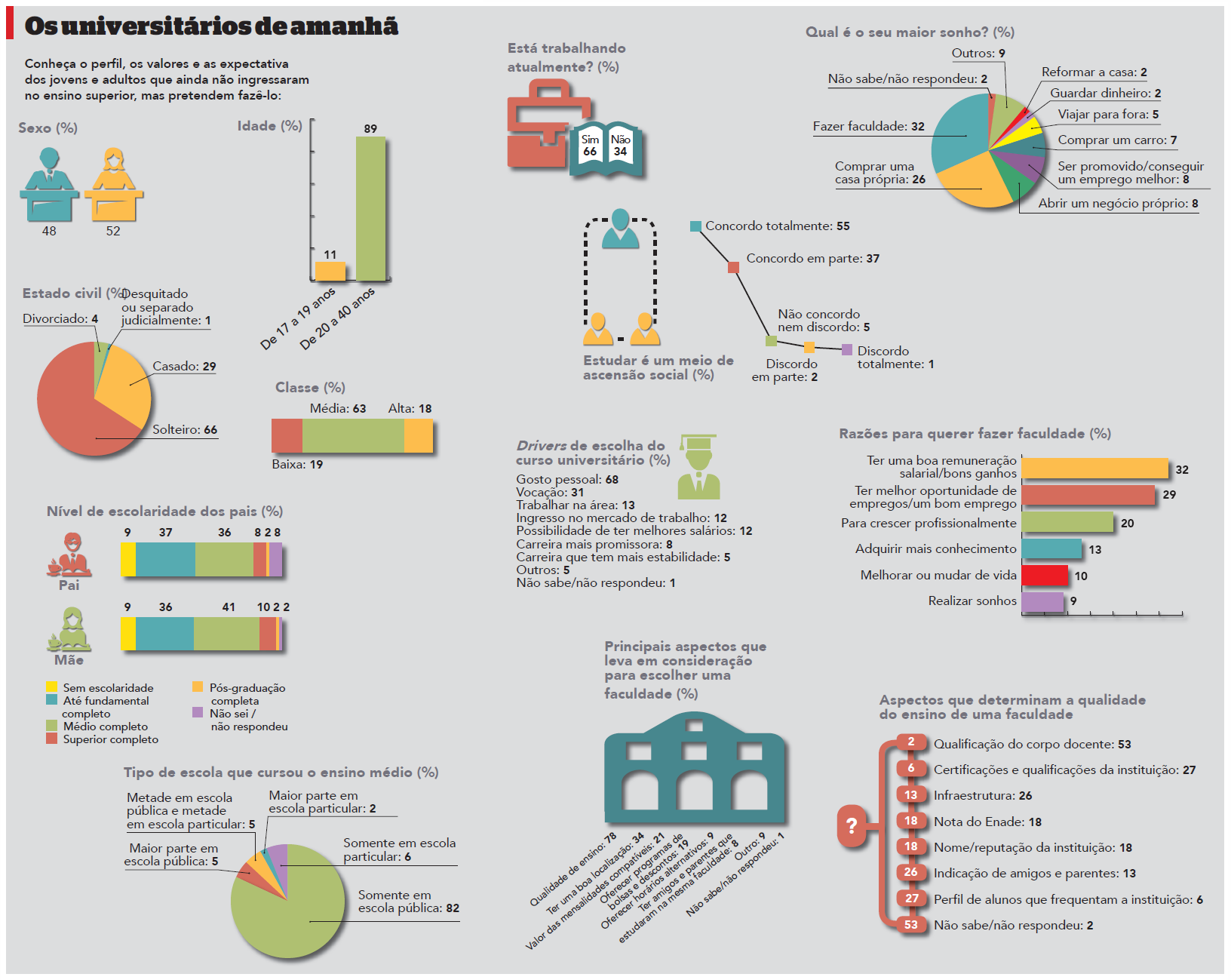 Pesquisa inédita revela o perfil e os valores de jovens e adultos que planejam ingressar no ensino superior. Levantamento também mostrou quem são os atuais universitários