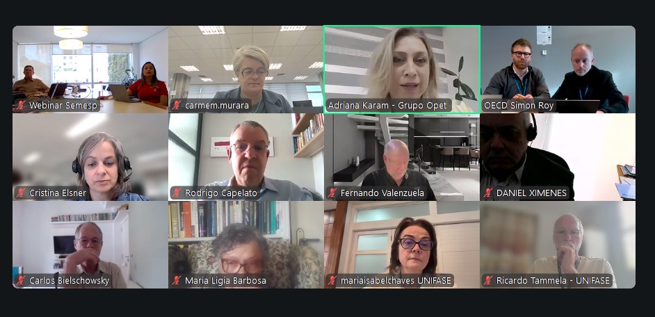 O Semesp realizou nesta quarta (10) o encontro remoto “Promovendo Qualidade no Ensino Superior: tendências em países da OCDE”, realizado em parceria com a Organização para a Cooperação e Desenvolvimento Econômico (OCDE), com as participações François Staring, analista de Políticas de Educação Superior na OCDE, e Simon Roy, líder de Equipe de Política de Educação Superior da OCDE.